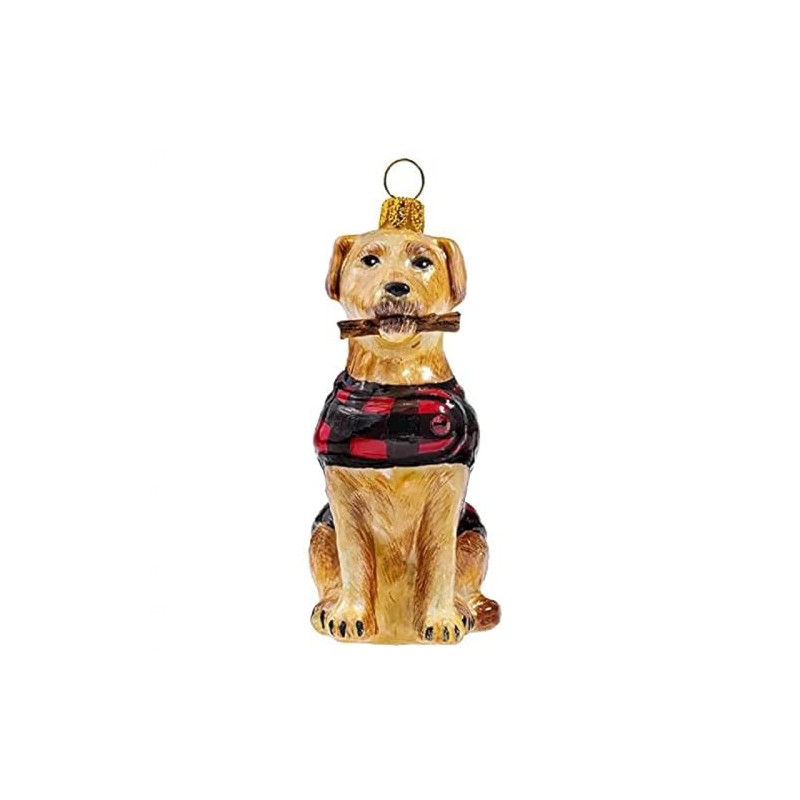 Joy To The World Yellow Labrador Retriever in Buffalo Check Coat Polish Glass Christmas Ornament