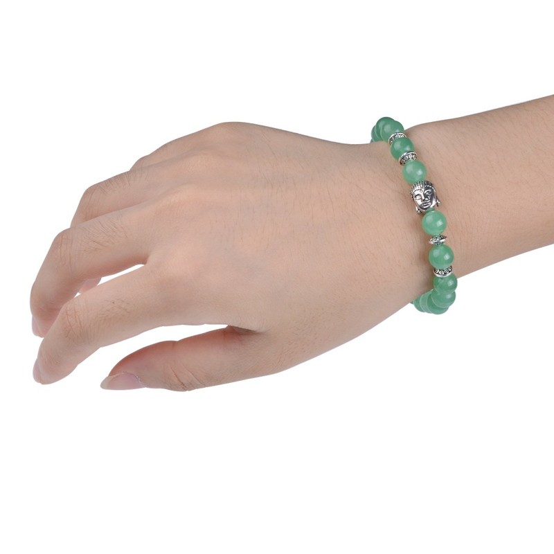 JOYA GIFT Natural Green Aventurine 8MM Round Beads Buddha head Gemstone Chakra Bracelet for Women