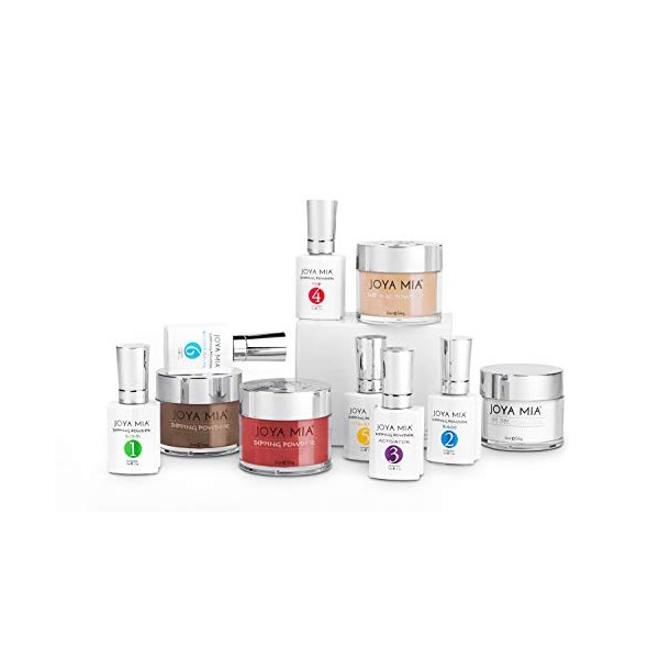 - 💋 EVERYTHING YOU NEED - This Complete Starter Kit is suitable for any nail enthusiast. We have included three vibrant dipping powder colors (Lime Green, Green, Peach) and a full jar of Clear powder. In this kit, you will also be getting all six liquid bottles steps #1 - #6 (Bond, Base, Activator, Top, Vitamin Oil, Brush Saver). All you need to accomplish a freshly dipped manicure is in Joya Mia’s Complete Nail Dipping Powder Starter Kit
