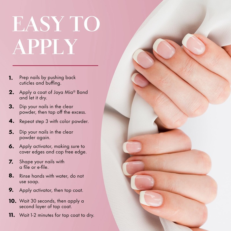 - Salon Quality Nails at Home - Experience the ultimate nail art routine with Joya Mia’s dip powder, gel polish, and nail lacquer polish set. This 3-in-1 Nail Color Dipping Powder Kit, combines price and performance, so you can create salon-worthy designs without having to leave your doorstep.