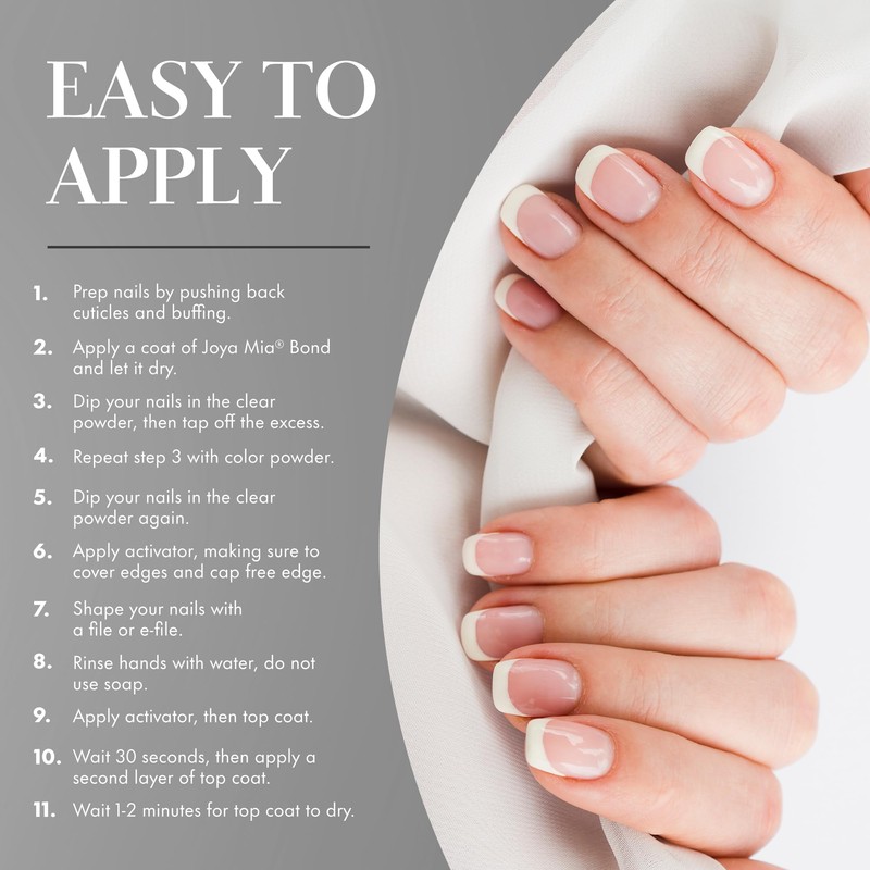 - Salon Quality Nails at Home - Experience the ultimate nail art routine with Joya Mia’s dip powder, gel polish, and nail lacquer polish set. This 3-in-1 Nail Color Dipping Powder Kit, combines price and performance, so you can create salon-worthy designs without having to leave your doorstep.