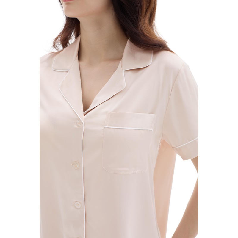 Joyaria Matte Poly Satin Pyjamas Women Button Down Short Sleeve PJ Set with Shorts Ultra Soft Silky Stretchy Cooling Sleepwear (Champagne, L)