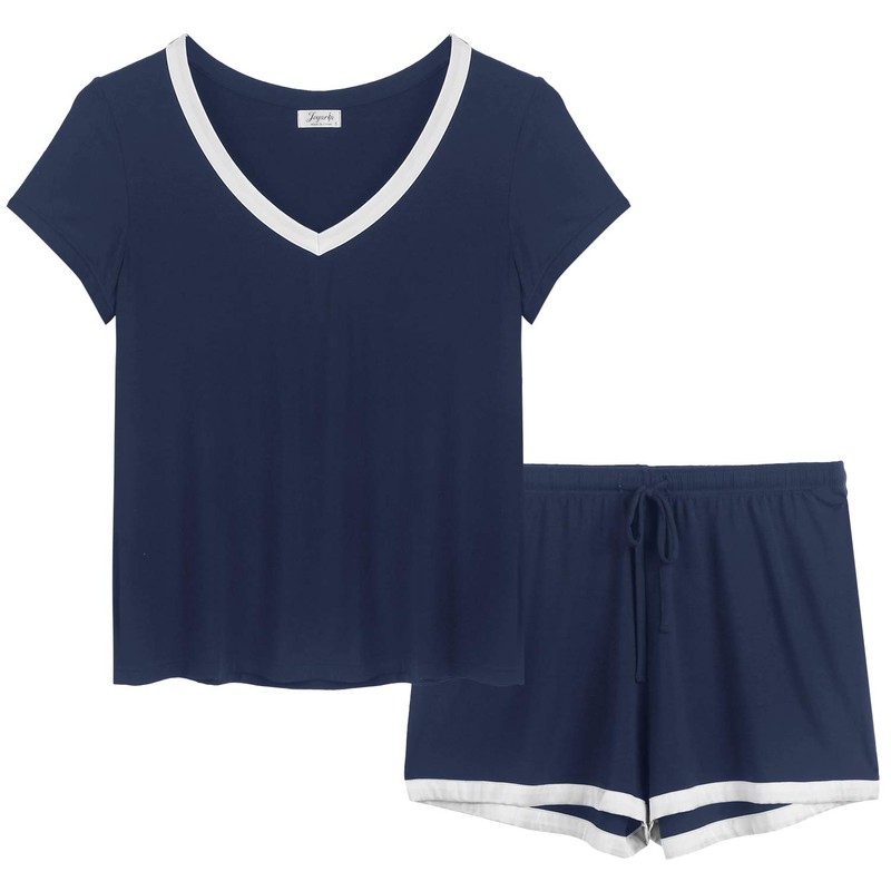 - 【BAMBOO VISCOSE FABRIC】These Women Pajama Shorts Set are made of 95% viscose made from BAMBOO and 5% spandex.Cooler than cotton, Softer than cotton,Silky than satin