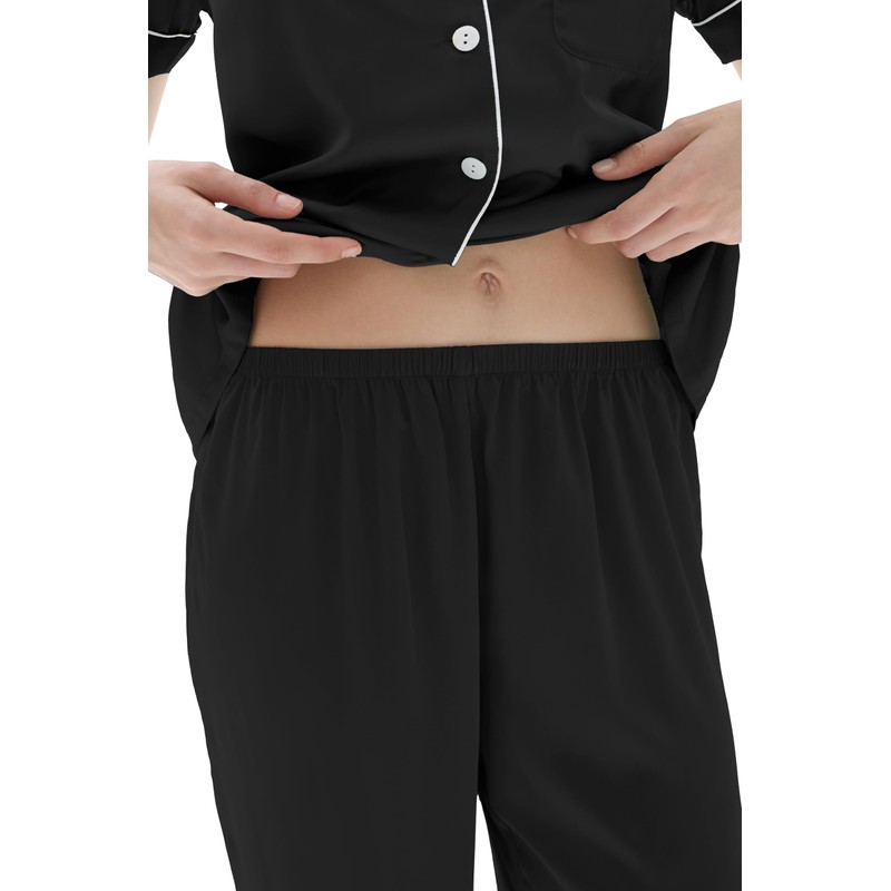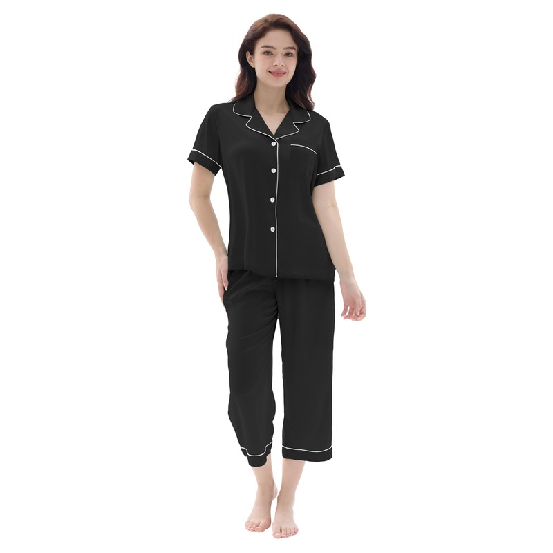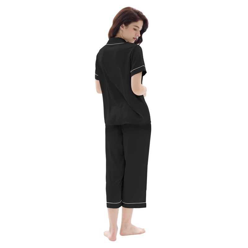 Joyaria Satin Pajama Sets for Women 2 Piece Short Sleeve Button Down Top & Capri Sleep Pant Sets(BlackL)