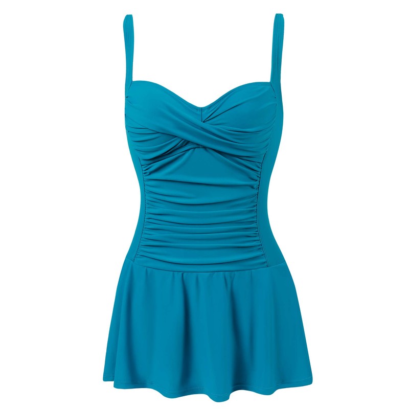 Joyaria Traje de baño de una pieza para mujer con falda, estilo retro, Azul turquesa, 8