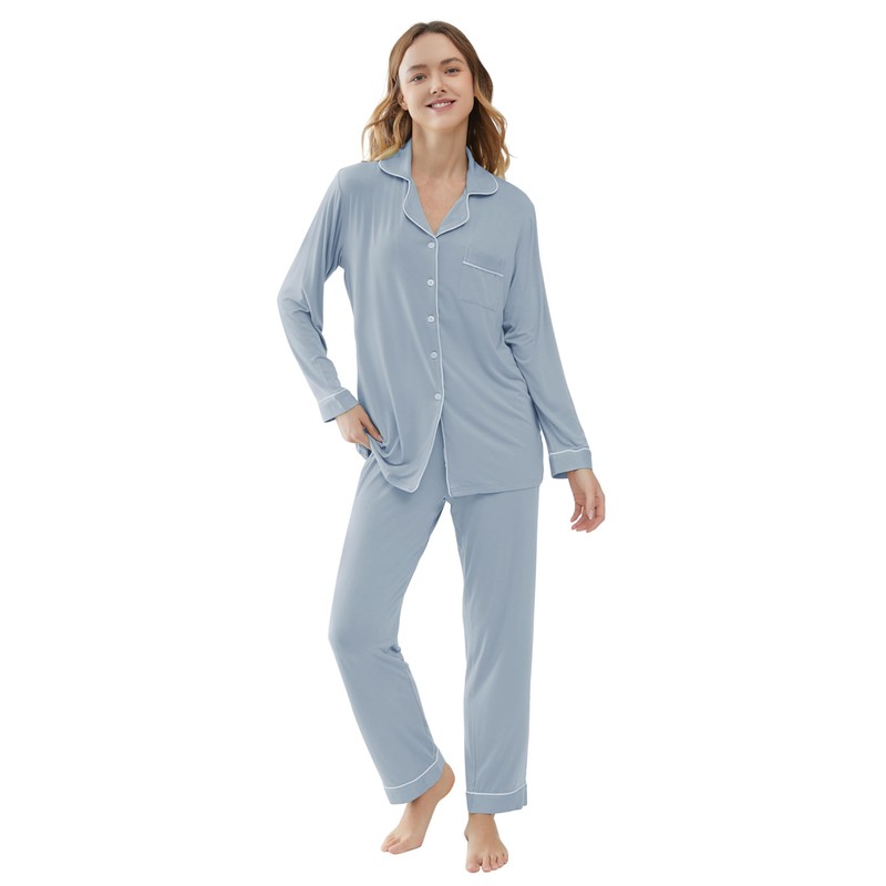- Stylish casual set: Stylish casual set: classic, contrasting piping and left chest pocket so you’re still cute and elegant even when you’re wearing pyjamas. The button placket is also very useful for breastfeeding mothers.