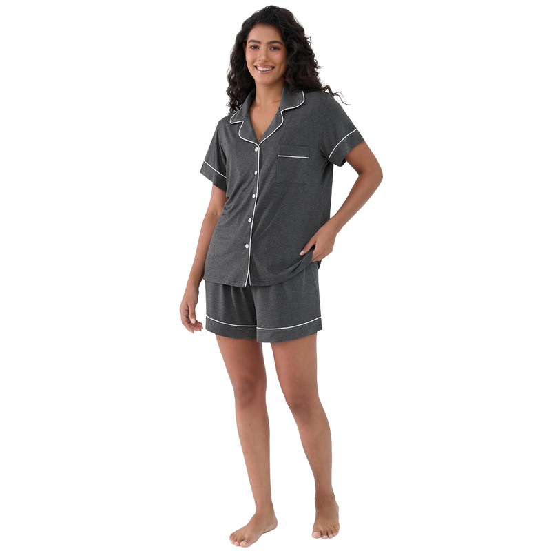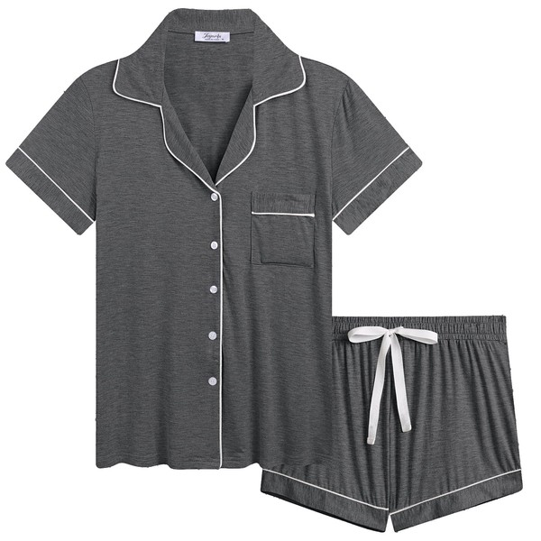 Joyaria Women's Summer Pajama Shorts Set - Ultra Soft Bamboo Viscose Sleepwear with Button Up Top, Cooling Comfy Loungewear (Charcoal,M)