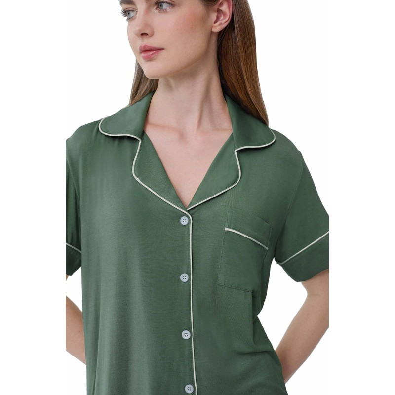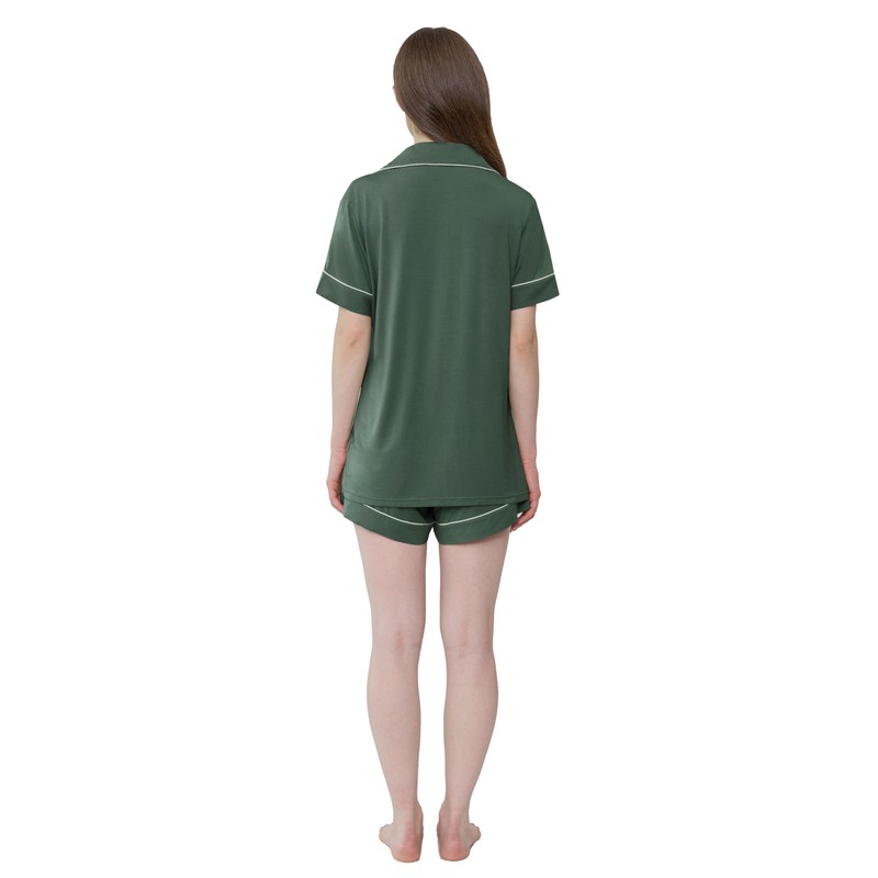 Joyaria Womens Cool/Cooling Pajamas Set Short Sleeve Bamboo Rayon Pjs Shorts Set(Olive,S)