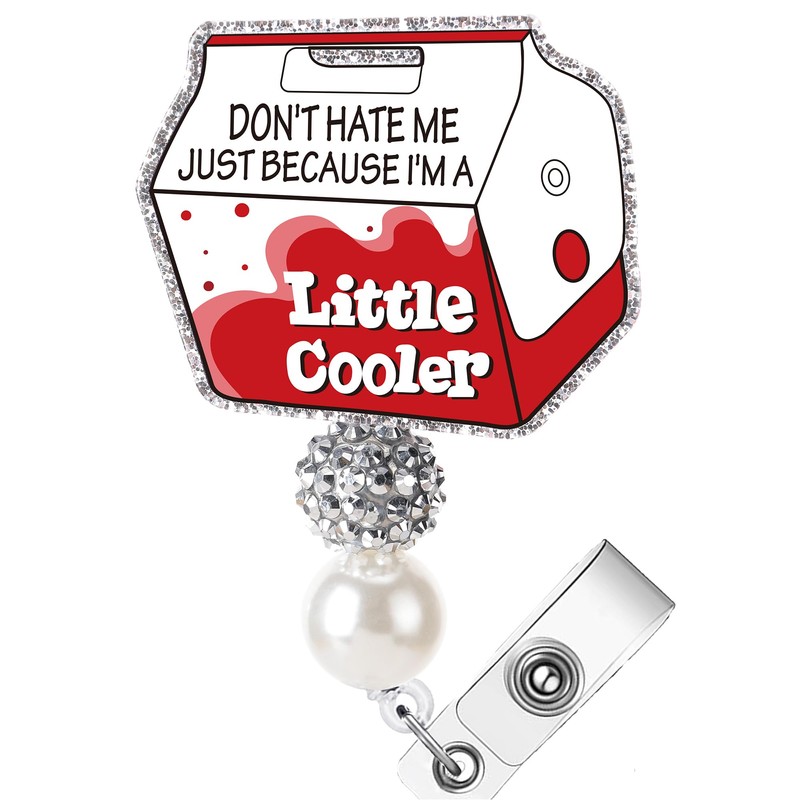 JoyAura ID Badge Holder - Funny Refrigerator Retractable Badge Reel with Beaded Acrylic Glitter, Little Cooler Badge Clip for Hospital School Supplies Office Gifts