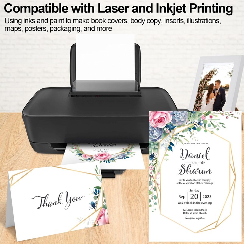 - [MULTIFUNCTIONAL APPLICATIONS] Cardstock paper is thick and strong, rendering it ideal for personal use, office and school supplies, art projects, business communications, posters, printed documents, and more. The cardstock paper holds ink well and delivers rich, vibrant colors and sharp images with perfect results. Unleash your creativity by cutting, folding, and gluing to your favorite size or shape. Card stock paper can be used to create brochures, menus, photo mats, and more.
