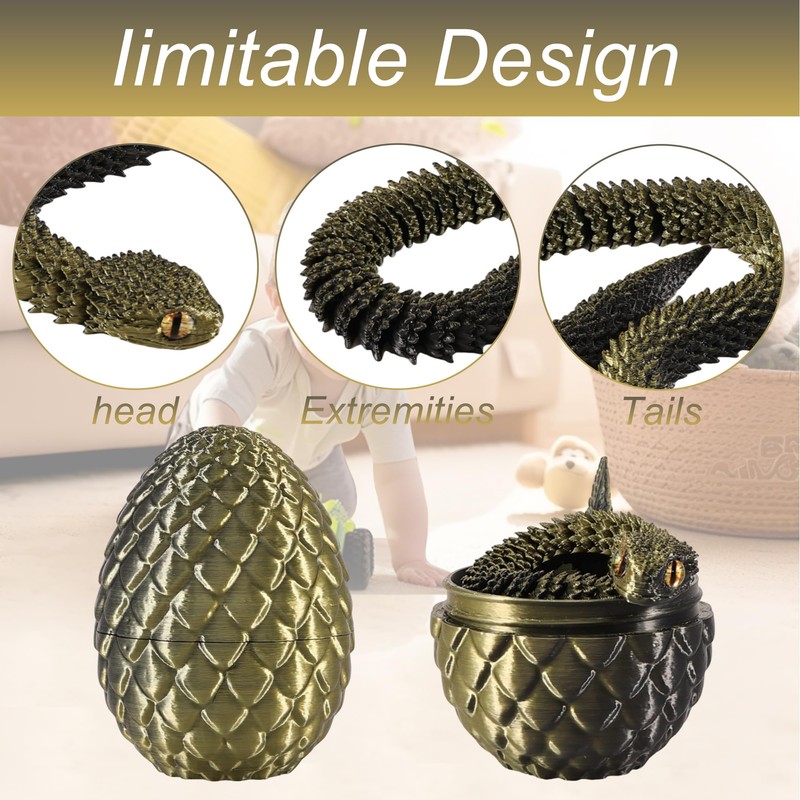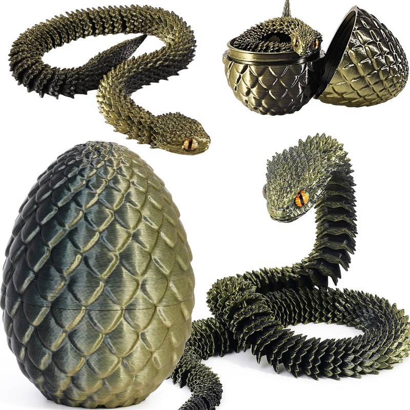 - 3D printed snake: you will receive a 3D printed snake hidden in a colourful egg. Head, torso and tail are adjustable, flexible and realistic and look like a real snake. The 3D snake intricate design and careful attention to detail make it an exquisite centrepiece that is sure to catch the eye.