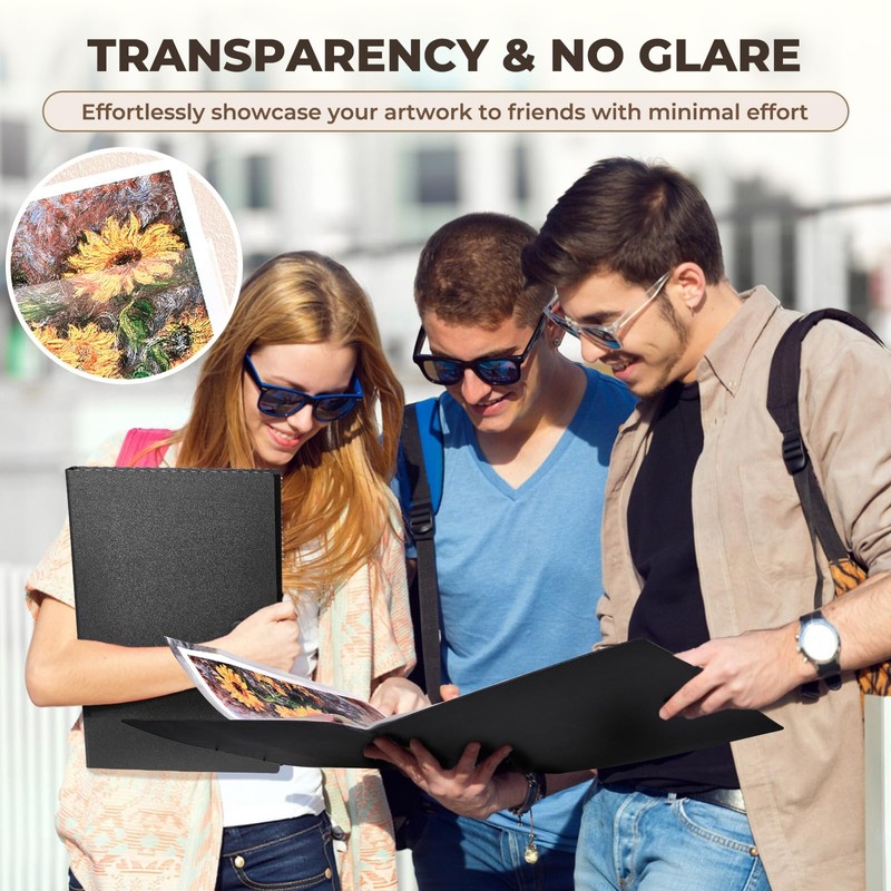 • High Transparency Inner Pages: The art portfolio features inner pages made of high-transparency PP components with a single layer of 5 mil thickness, ensuring a clear display of your art folder organizer