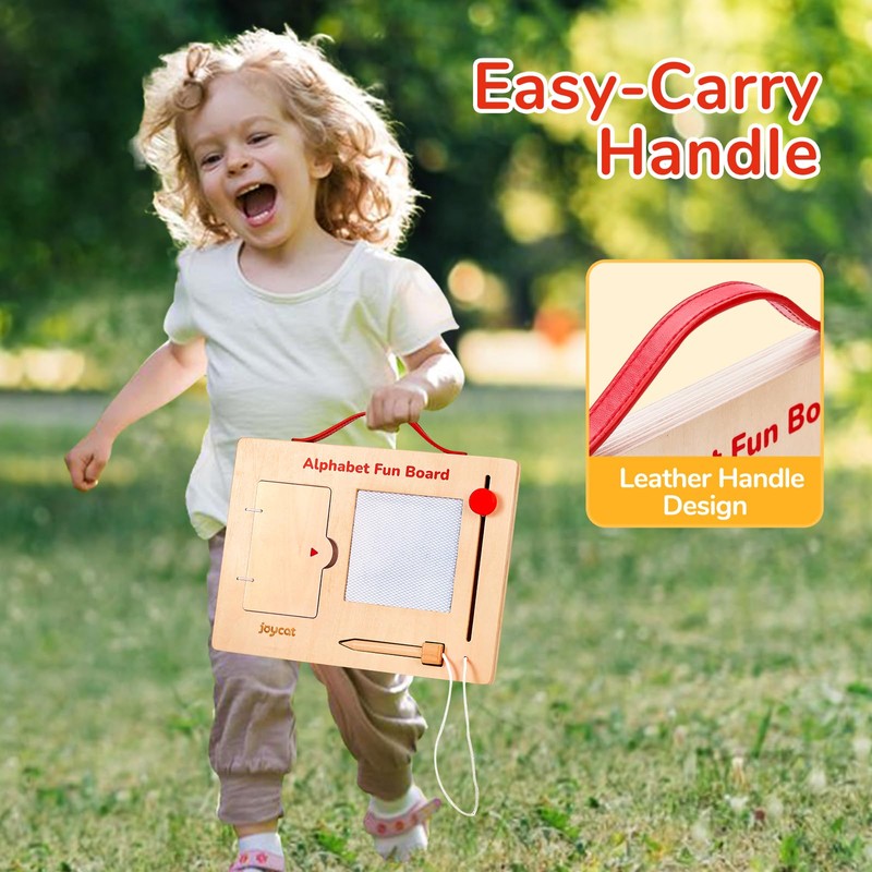 • Travel Activities for Kids: The writing board is the right size and easy to carry with the leather carrying handle, and it has a magnetic attachment to store cards and pen, making it easy to store and not easy to lose,so it's perfect for learning and playing anywhere