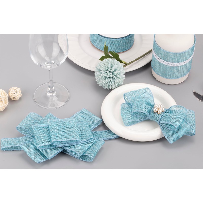 Joycrosso Burlap Wired Edge Ribbon 2.5 inch x 10 Yards, Island Blue, Ideal for Crafting, Gift Wrapping, Wreath, Christmas Tree, and Rustic Wedding Decorations