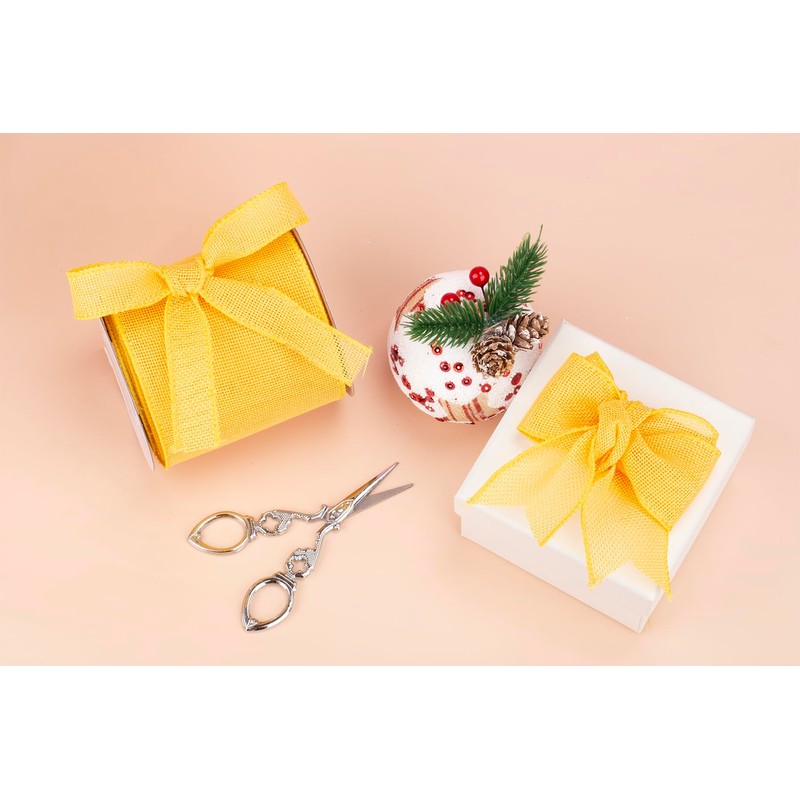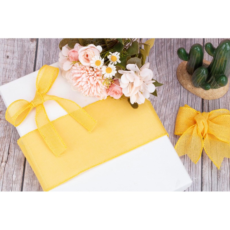 Joycrosso Burlap Wired Edge Ribbon 2 inch x 10 Yards, Yellow, Ideal for Crafting, Gift Wrapping, Wreath, Christmas Tree, and Rustic Wedding Decorations