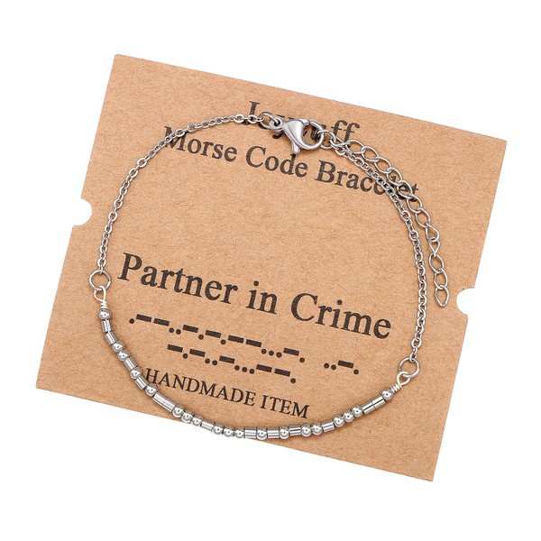 JoycuFF Partner in Crime Morse Code Chain Bracelets for Women Funny Inspirational Coworker Gifts Motivational Silver Chain Bracelets Jewelry for Her Birthday Christmas Retirement Grauation