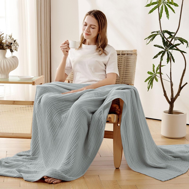 - 【Multiple Usage & Gift】Our lightweight gauze blanket is suitable for all seasons. Available in a variety of sizes and colors, it can match any occasion. Whether you are snuggling on a chair sofa, resting in bed or enjoying outdoor activities, this blanket can ensure unparalleled comfort and coziness. This cotton gauze blanket is suitable for adults, children and babies, making it a perfect gift for family and friends! You can also use our blanket as a travel blanket, crib blanket.
