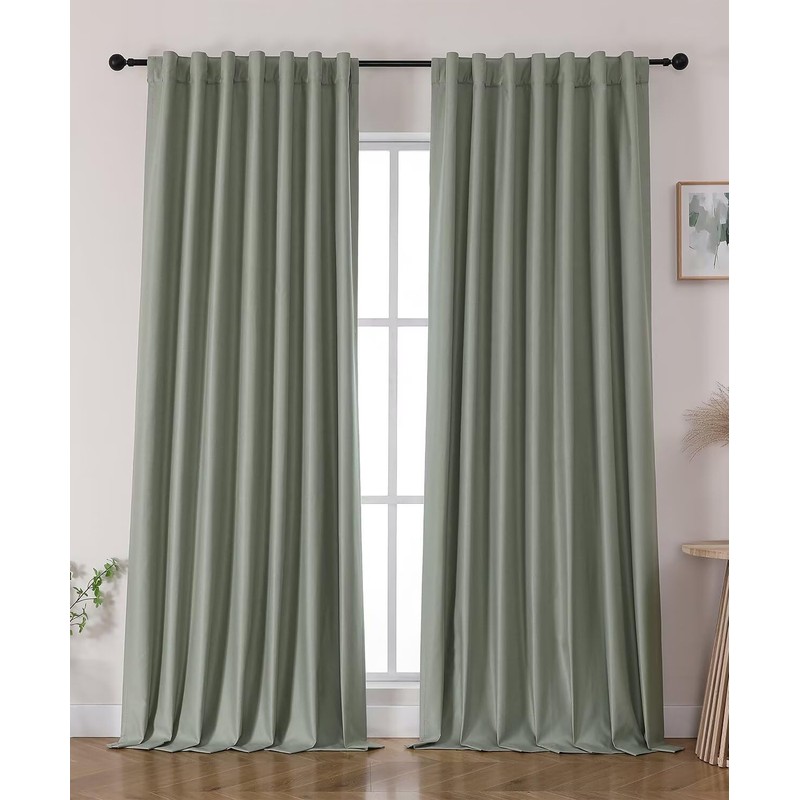 Joydeco Blackout Curtains for Bedroom 72 inches Long,Back Tab/Rod Pocket 100% Blackout Living Room Drapes, Textured Thermal Insulated Blackout Curtains 2 Panels Set,52" W x 72" L,Pure Sage