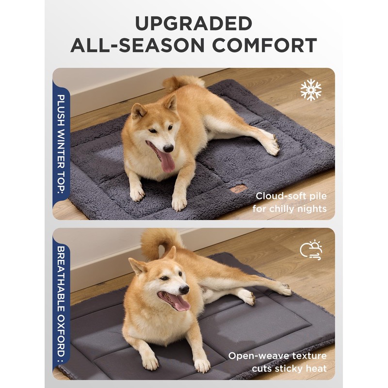 Joydeco Low-Profile Dog Mat Reversible Bed Pad, Washable Dog Crate Pad with Ultra Soft Fleece, Compact Design Kennel Bed Mats for Large Medium Small Pets, 89x58cm, Light Grey