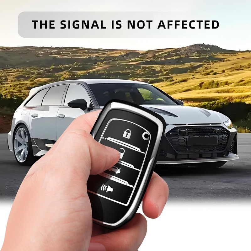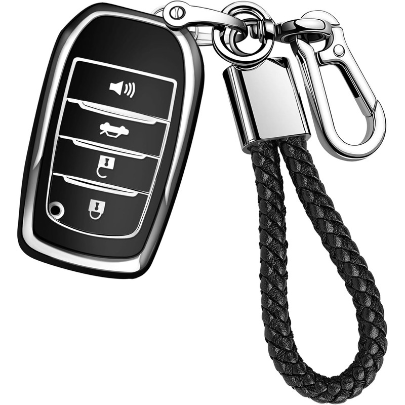 JOYEAR for Toyota Key Fob Cover with Key chain Compatible with 2025 Camry 2020-2025 RAV4 Prime 2019-2025 Land Cruiser 2021-2025 Venza Hilux Grand Highlander Tundra Corolla BZ4X (Silver-Black)