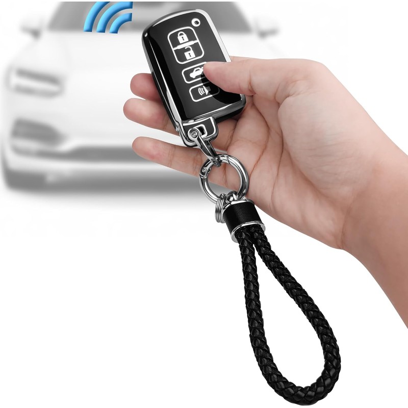Material: Keychain Made With Premium Leather and Metal Key Cover Made with premium TPU. Super thin, soft, trending looking and pretty durable. Make your key fob look new and premium