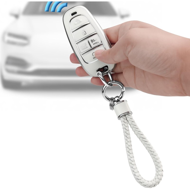 JOYEAR Keychain with Key Fob Cover Compatible with Hyundai 2019 2020 2021 2022 Sonata Nexo Santa Fe Tucson 5-Buttons(Silver-White)