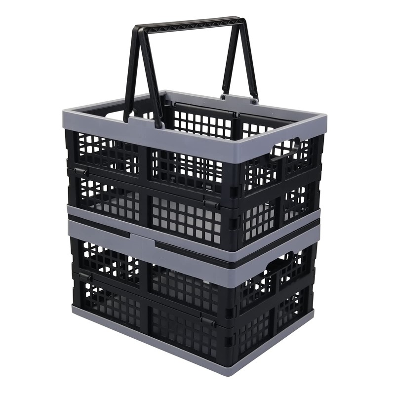 Joyeen Collapsible Storage Crate with Handles, Folding Plastic Crate Pack of 2