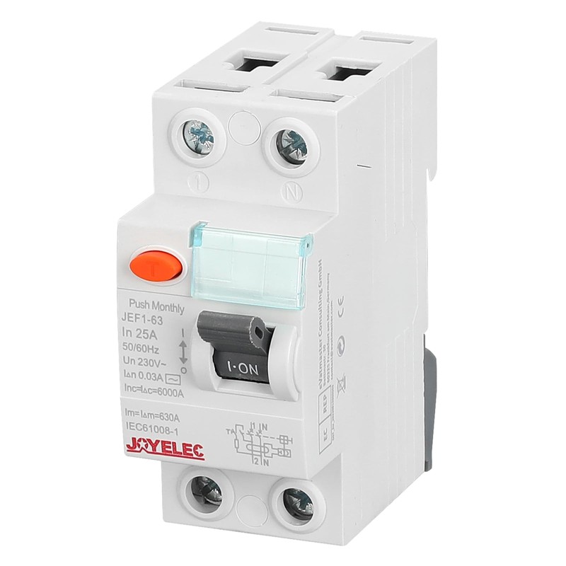 JOYELEC Differential Circuit Breaker, Protection Against Loss of Circuit, Short Circuit Protection, Overload Protection, 1P+N, 6kA, Idn = 0.03A, In=25A, AC230V