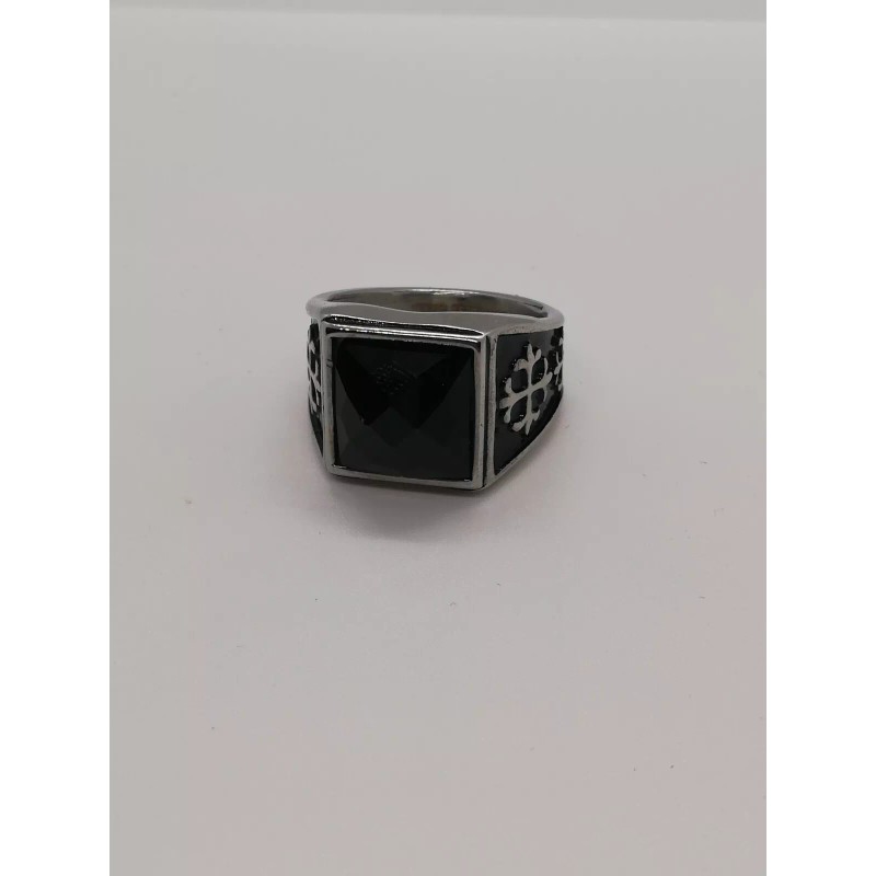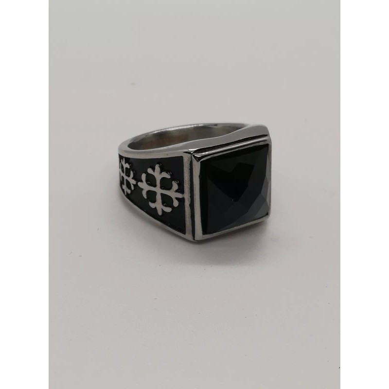 Joyeria Jara Square Onyx CZ Titanium Stainless Steel Size 11 Biker Ring New