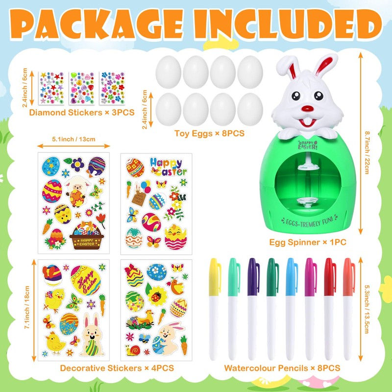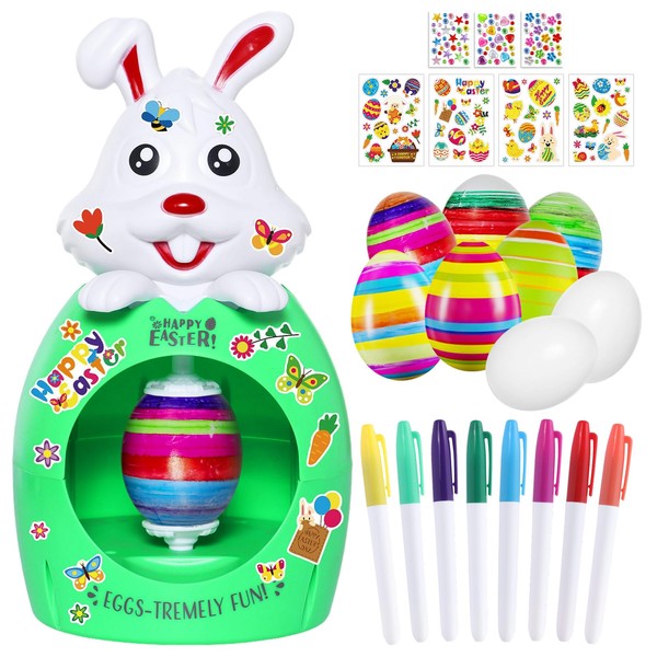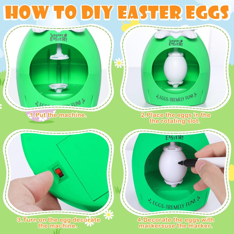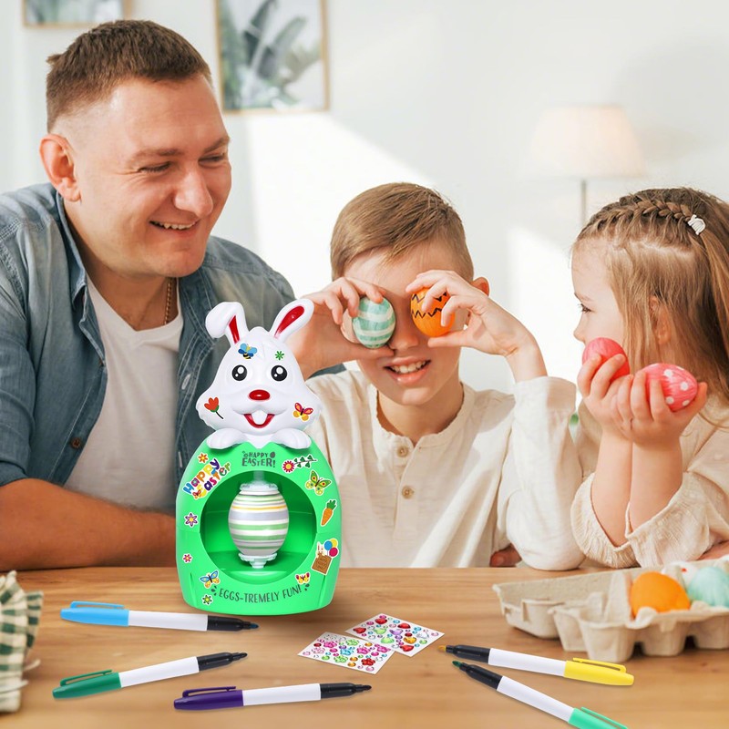 - 【Inspire Creativity】Equipped with 8 colorful markers and unique egg rotating decorating design, children can freely rotate the eggs for even coloring and inspire unlimited creativity. It can cultivate children's imagination and make egg painting easier and more fun.