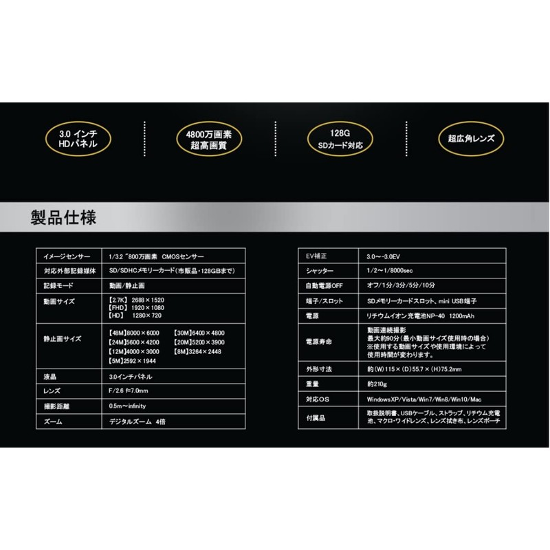 Joyeux 48 MEGA PIXEL Digital Camera with Wide Lens, DCDR6S, 3.0 Inch HD Panel, 48 Megapixels, Ultra 128G, SD Card Compatible, Ultra Wide Angle Lens