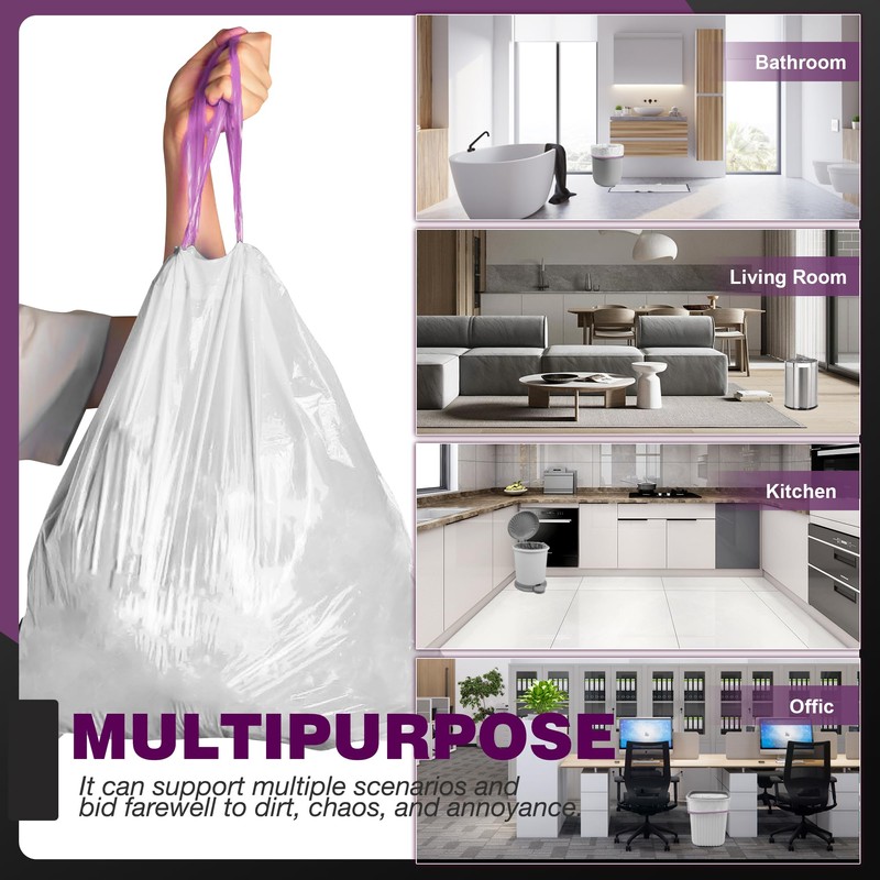 • Handy Drawstring: The small trash bags are designed with durable drawstring Ties, easily remove garbage and keep your hands clean, the drawstring 4 gallon trash bags are easy to lift and throw away