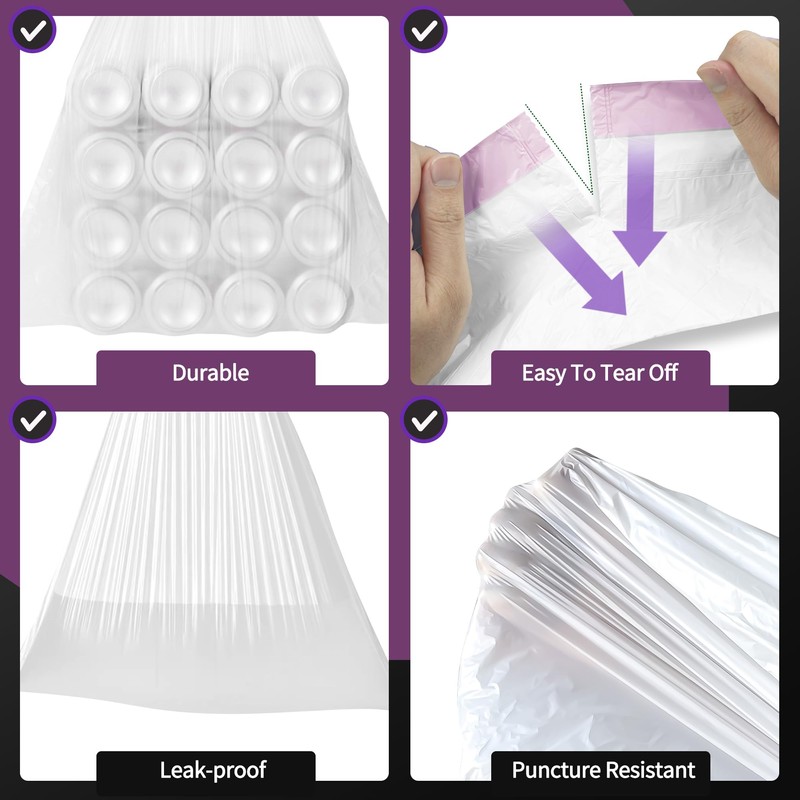 • Tear Resistant: Our 4 gallon trash bags crafted from pure HDPE material, they boast strong puncture and tear resistance, can make the mini garbage bags stronger, avoid leakage