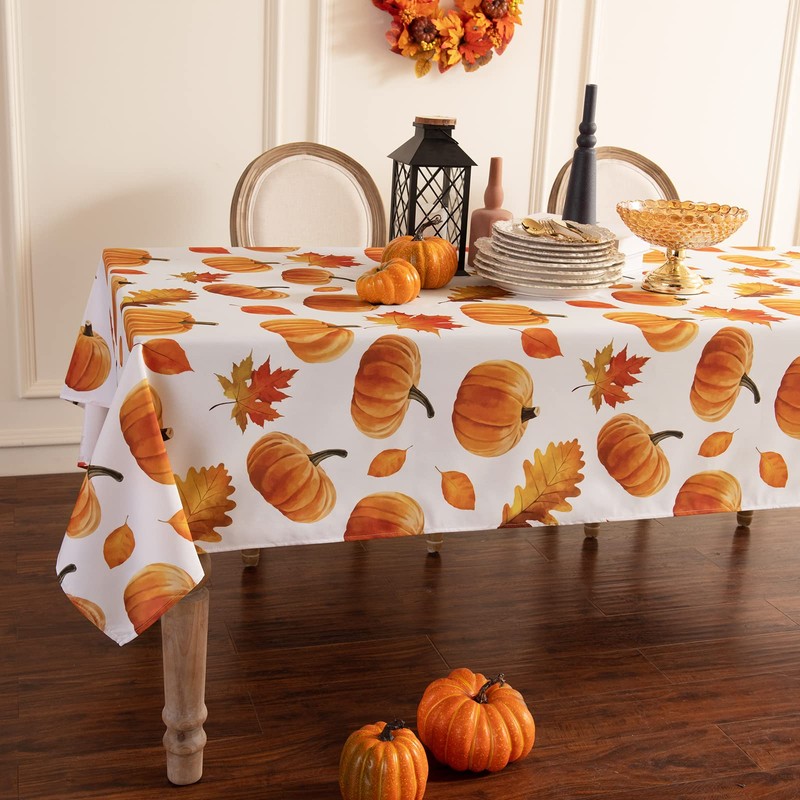 - VARIOUS OCCASIONS: Beautiful Easy Care Kitchen and Dining Room Tablecloth for Fall, Thanksgiving Dining, Entertaining, Parties, Picnics, Restaurants and Cafeterias.