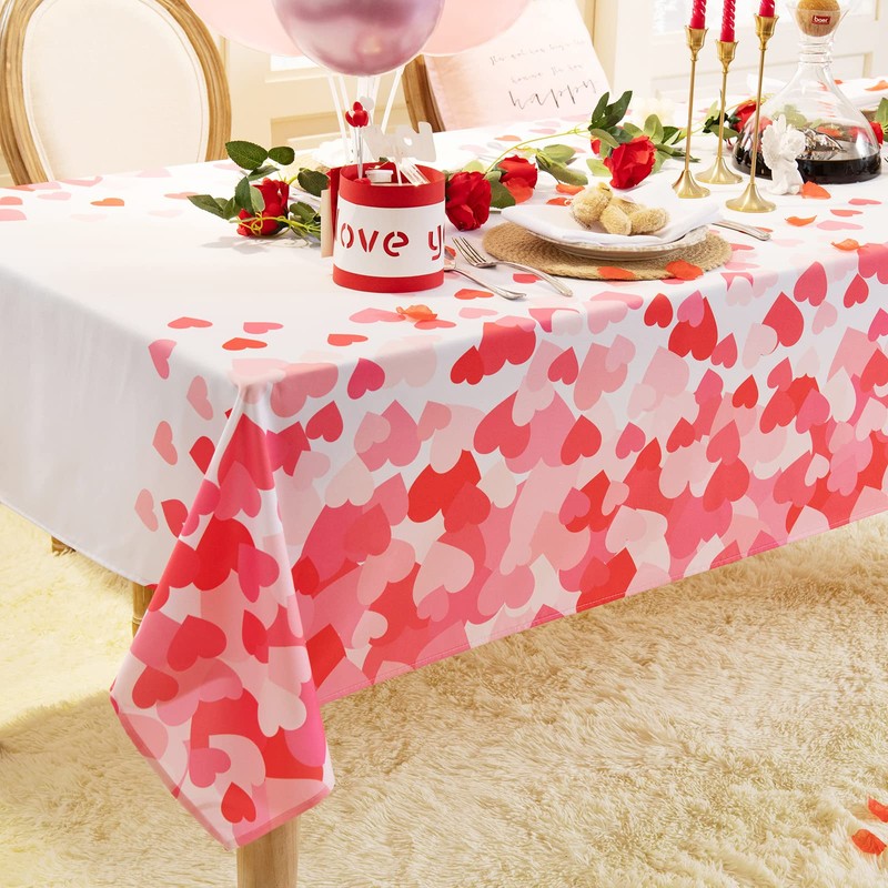 Joyfol Day Valentines Tablecloth Square,Red Heart Polyester Fabric Table Cloth,Washable Easy Care Reusable Table Cover,Anniversary Party Table Decoration for Dining Party(54x54 Inches)