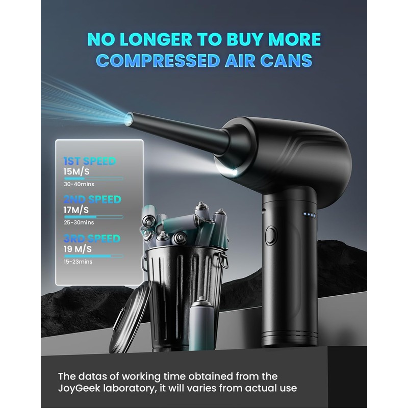 JoyGeek 11-in-1 Compressed Air Duster, 3-Gear Adjustable 120000 RPM Electric Air Duster with LED Light, Canned Keyboard Cleaner for Office, 9000mAh Cordless Air Duster for Computer/Car(Black)