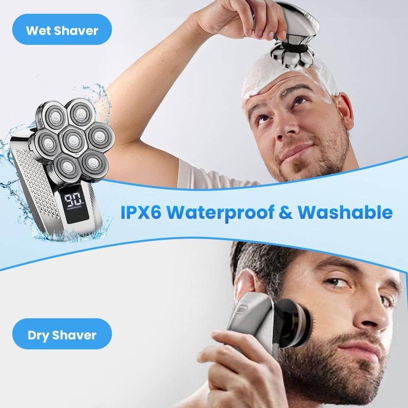 JoyGeek Bald Razor Men's Electric, 7D 5-in-1 for Men with Bald, Wet and Dry Men's Bald, LED Display Rotary Bald Razor, USB Rechargeable Bald Razor