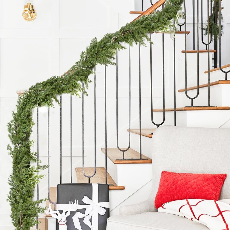 This artificial greenery garland features a realistic design with cedar and cypress foliage, perfect for draping over mantels, fireplaces, tables, or staircases. Crafted with high-quality materials, this garland provides a lush, natural look that will elevate your holiday decor. Get into the spirit of Christmas! What better way to capture the Winter season than with a pine garland on your mantel or across your front door frame? Beautiful Colors Warm Up Your Home If you're looking to spruce up the entryway, cozy up those indoor plants, or add some green color to the centerpiece on your dining table, this 6 feet Christmas Pine Garland helps bring the color of the nature right into your home this winter! Make this winter no longer boring.