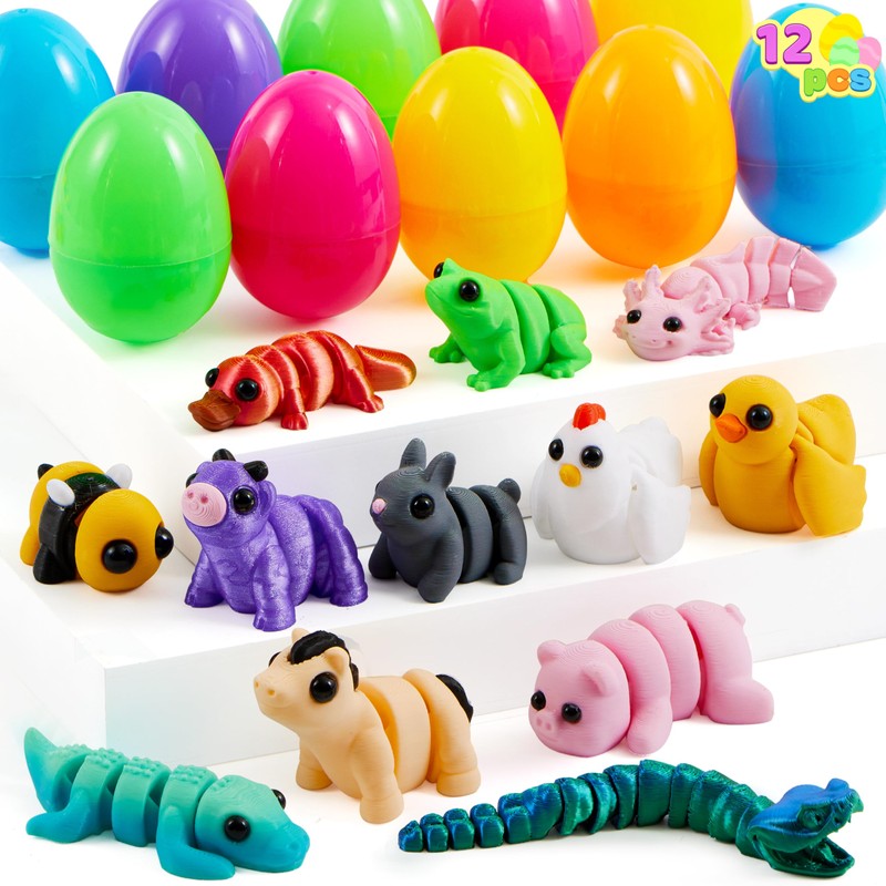 JOYIN 12Pcs Prefilled Easter Eggs with 3D Mini Animals, Magic Toy, Easter Basket Stuffers for Boys & Girls, Easter Theme Party Favors, Easter Egg Hunt, Classroom Prize Supplies(Age 8+)