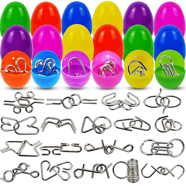 JOYIN 18 Easter Eggs Filled with 3D Puzzle Toy Set Made of Metal for Easter Gifts, Puzzle Games, Puzzle Games, Metal Puzzle for Adults and Children, Easter Egg Hunt, Easter Eggs for Filling Easter