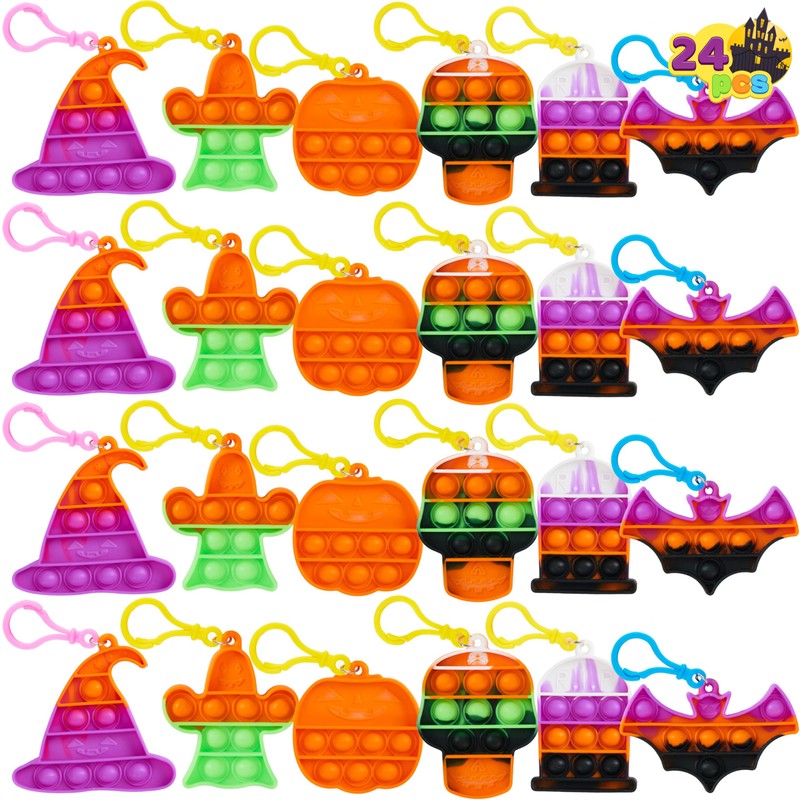 JOYIN 24 PCS Halloween Pop Bubbles Fidget Toys Keychain, Mini Pop Keychain Stress Relief Toys for Halloween Party Favor Goodie Bag Fillers, School Classroom Game Prizes