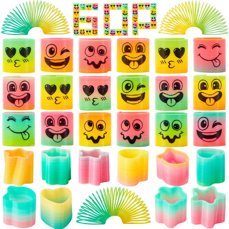 - COMPREHENSIVE SET. Our rainbow springs party favors includes 20 mini round face springs, 10 mini shaped springs . You will surely make a lasting impression with your guests and friends with these birthday goodie bag stuffers.