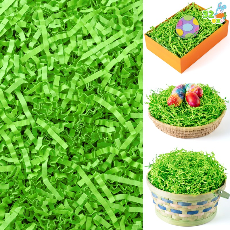 JOYIN 32oz Easter Grass, Pure Light Green Recyclable Paper Grass, Shred Raffia Crinkle Cut for Easter Egg Hunt, Party Bag Decor Favors, Gift Wrapping