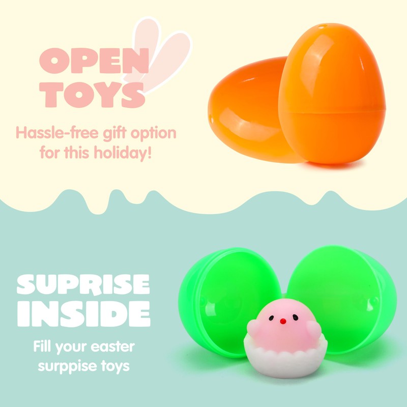• Super Value Pack: This set includes 48 colorful eggs, each filled with an adorable mochi squishy toy. A perfect super value pack for Easter egg hunts and party fun!
