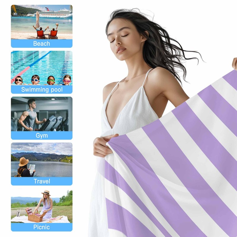 Joyinmory Beach Towel Purple Stripes Bath Pool Towels Simple Style Soft Absorbent Beach Towels Large Quick Dry Lightweight Camping Travel Yoga Gym Swim Towels for Adult Kids 35x70 Inch