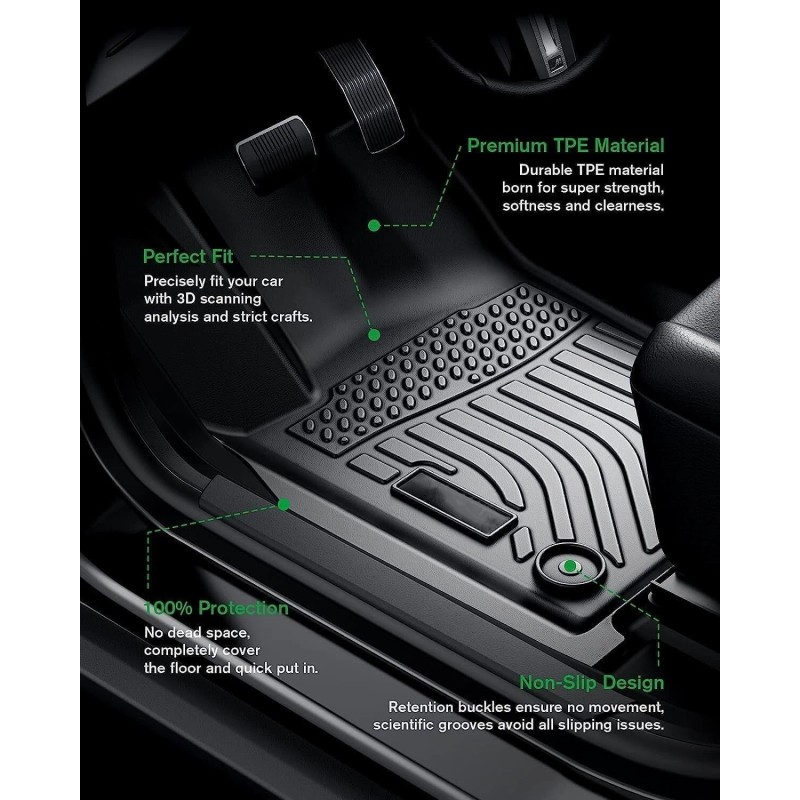 - Perfect Fit&No Slipping: The mats are tailored to fit your vehicle's exact dimensions. You can be sure that they will fit like a skin and provide maximum coverage. The 3D extended border makes you feel that the floor mat integrates the car during use.
