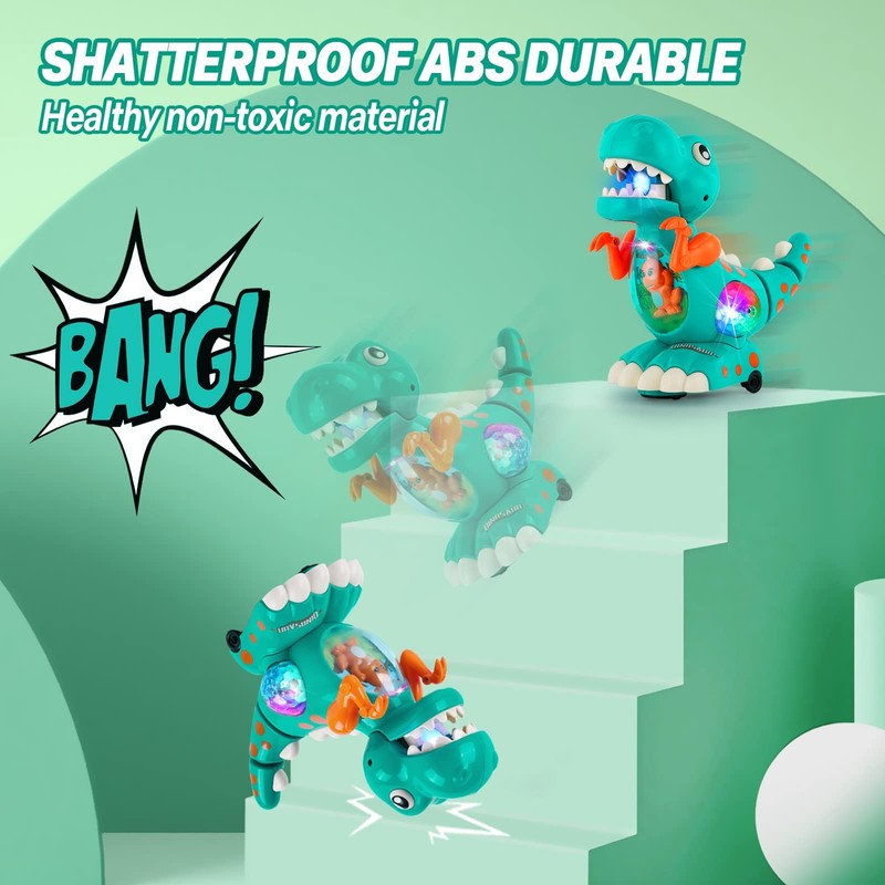 - 【Musikspielzeug mit Beleuchtung】Dinosaurier spielzeug für Kinder im Alter von 1, 2, 3, 4 und 5 Jahren unterstützt die Hörentwicklung des Babys. Melodische Musik kann Babys Rhythmus beibringen und sie werden zur Musik tanzen. Mund und Körper des Dinosaurier spielzeugs leuchten bei Bewegung auf. Das blinkende LED-Licht ist weich, schadet den Augen des Babys nicht und unterstützt die visuelle Entwicklung.