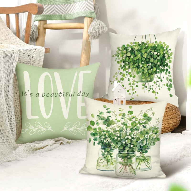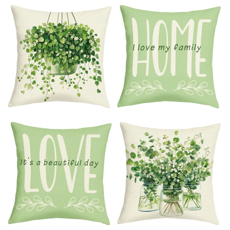 Joymaison Green Farmhouse Cushion Covers 45 x 45 Pack of 4 Green Plants Leaves Square Throw Pillow Case Decorative Sofa Cushion with Invisible Zipper