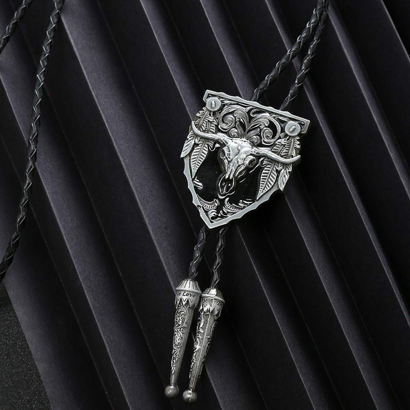 - HANDMADE JEWELRY : The cow skull bolo tie rope is a hand braided leather type material, at the end each rope there is one metal tip which keep them from fraying. This unique design enhances the drape of the tie, making it more beautiful and fashionable