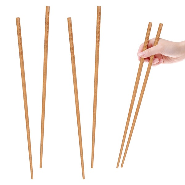 Joynine 32 cm Extra Long Reusable Wooden Kitchen Sticks 2 Pairs for Safe Cooking and Frying, Non-Slip Design, Reusable, Long Wooden Chopsticks